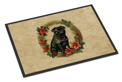 Pug Christmas Flowers Doormat Front Door Mat Indoor Outdoor Rugs for Entryway, Non Slip Washable Low Pile, 24H X 36W