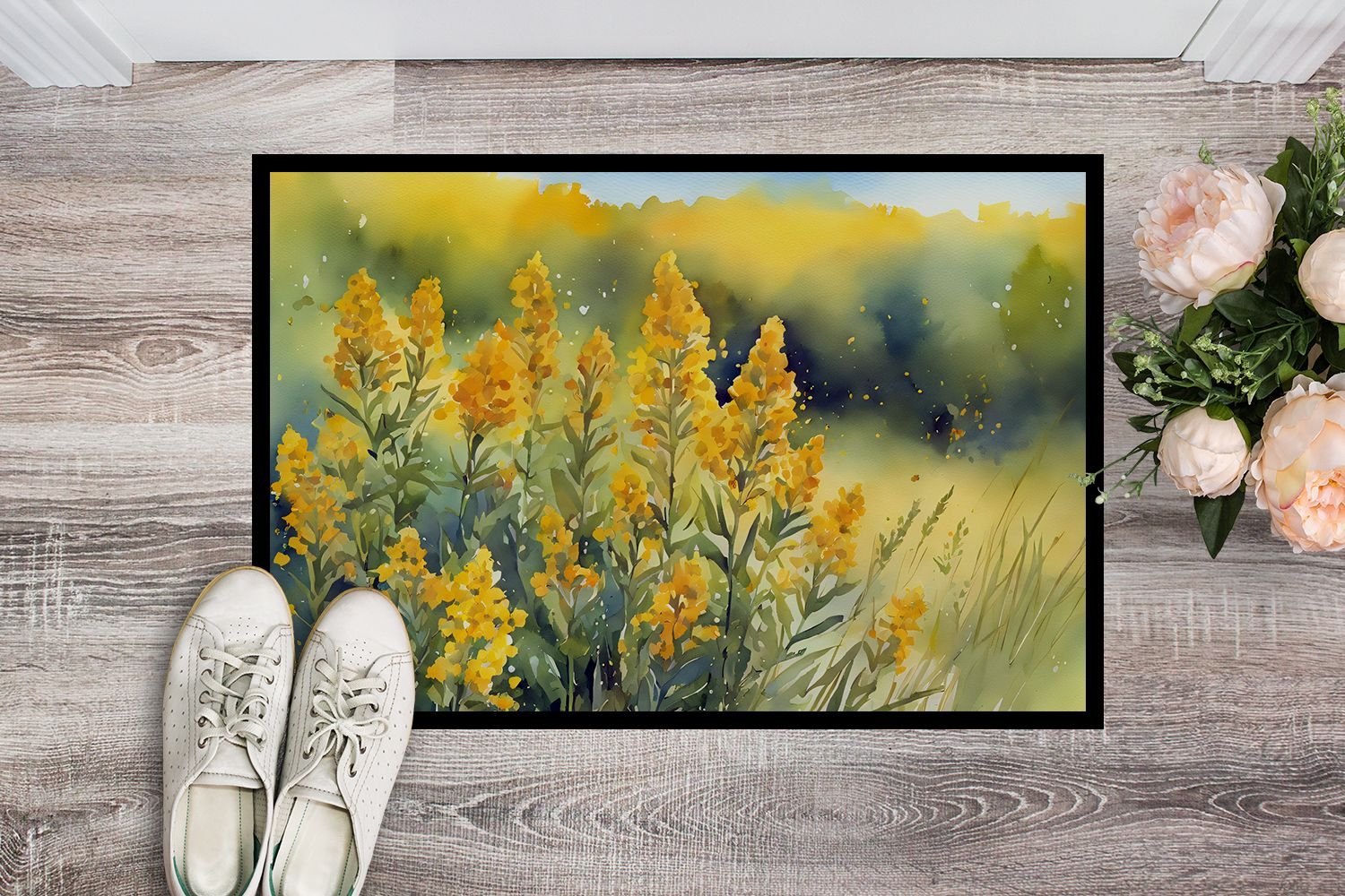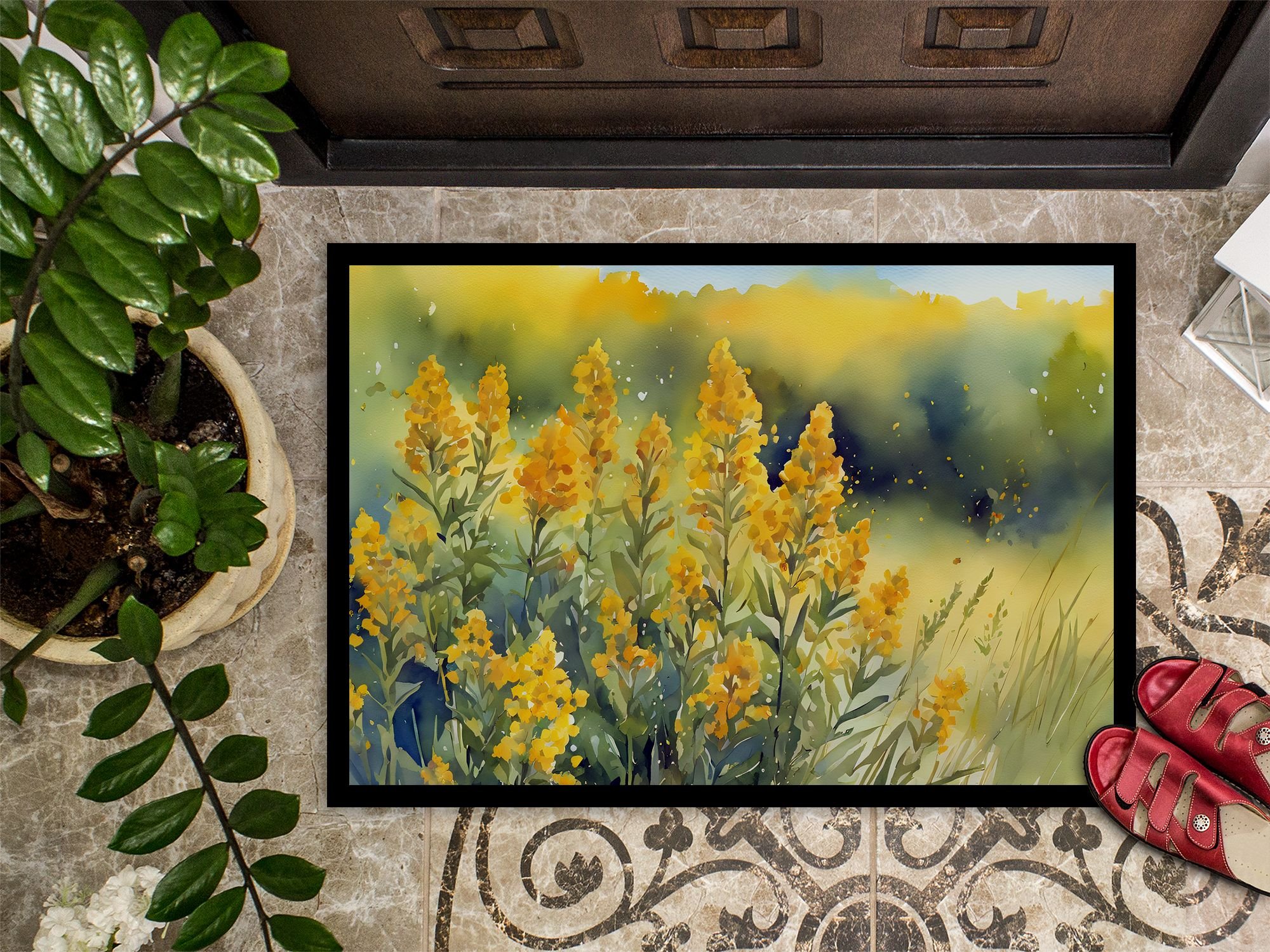Nebraska Goldenrod in Watercolor Doormat Front Door Mat Indoor Outdoor Rugs for Entryway, Non Slip Washable Low Pile, 24H X 36W Nebraska Goldenrod in Watercolor Doormat Front Door Mat Indoor Outdoor Rugs for Entryway, Non Slip Washable Low Pile, 24H X 36W Nebraska Goldenrod in Watercolor Doormat Front Door Mat Indoor Outdoor Rugs for Entryway, Non Slip Washable Low Pile, 24H X 36W
