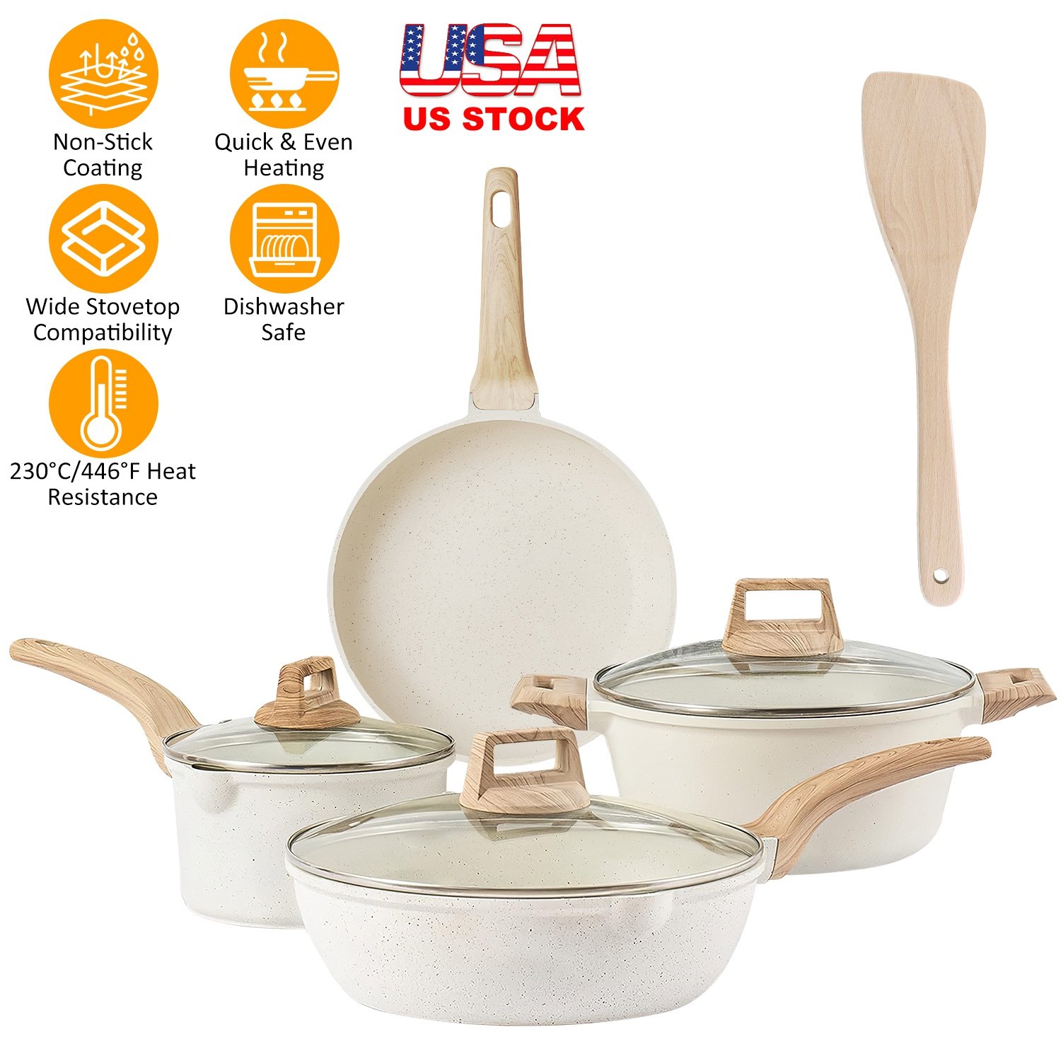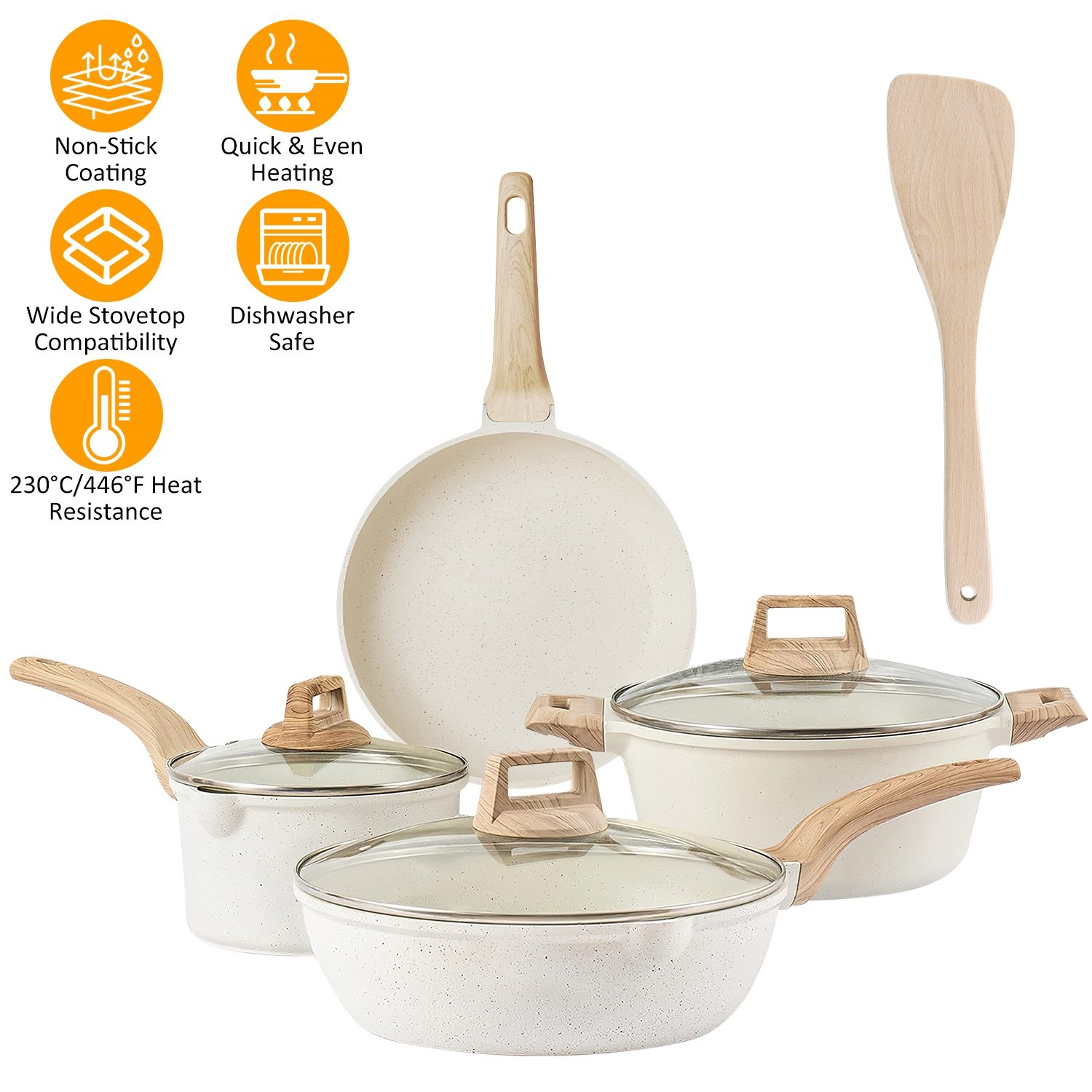Home > Kitchen Cookware Set Pots and Pans Set White Nonstick Granite Coating Dishwasher Safe Fast Even Heat Induction Frying Pan Stockpot Sauce Pan