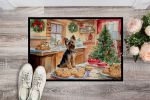Doormat featuring breed specific Yorkshire Terrier Yorkie artwork. Celebrate Christmas with this Christmas Doormat. Welcome your guests in style with our Artwork Door Mat, designed to withstand almost any weather condition. This mat, measuring approximately 24 by 36 inches, is held together by durable black binding tape. Its top layer, composed of polyester felt, is dyed with the eye-catching image you see on the mat. A few layers below provide the mat with stability, while its rubber bottom is stamped to help prevent slipping and ensures safety. Our mat works wonderfully as both an indoor or outdoor door mat. For cleaning, simply hose it off with water or use a power washer - no need for any cleaner that produces suds. Avoid scrubbing with a brush, instead, opt for the vacuum on floor setting. Designed manufactured and printed in the USA, this mat is a perfect addition to your porch, outdoor kitchen, entryway, or any indoor space. Its unique design makes it a charming decorative rug that greets your guests and adds a stylish touch to your home decor.